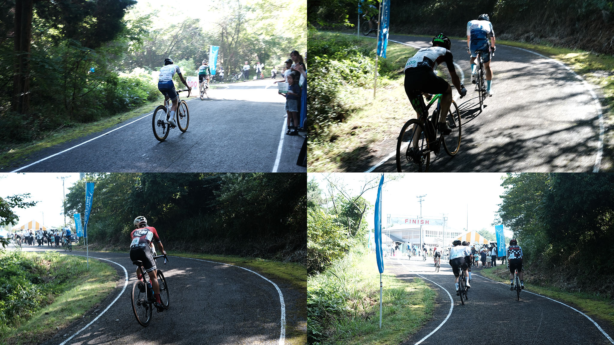 沿道の声援に押され、最後の激坂で声を張るチームメイトに励まされ、選手たちは最後の最後となるワインディングの登りに到達します。さすがに全ての選手が疲労困憊の表情を隠せません。それでも「最後!」とばかりに気持ちを振り絞って脚を回します。一際大きくなる声援も「回せ!」「踏め!」とシンプルなものに。