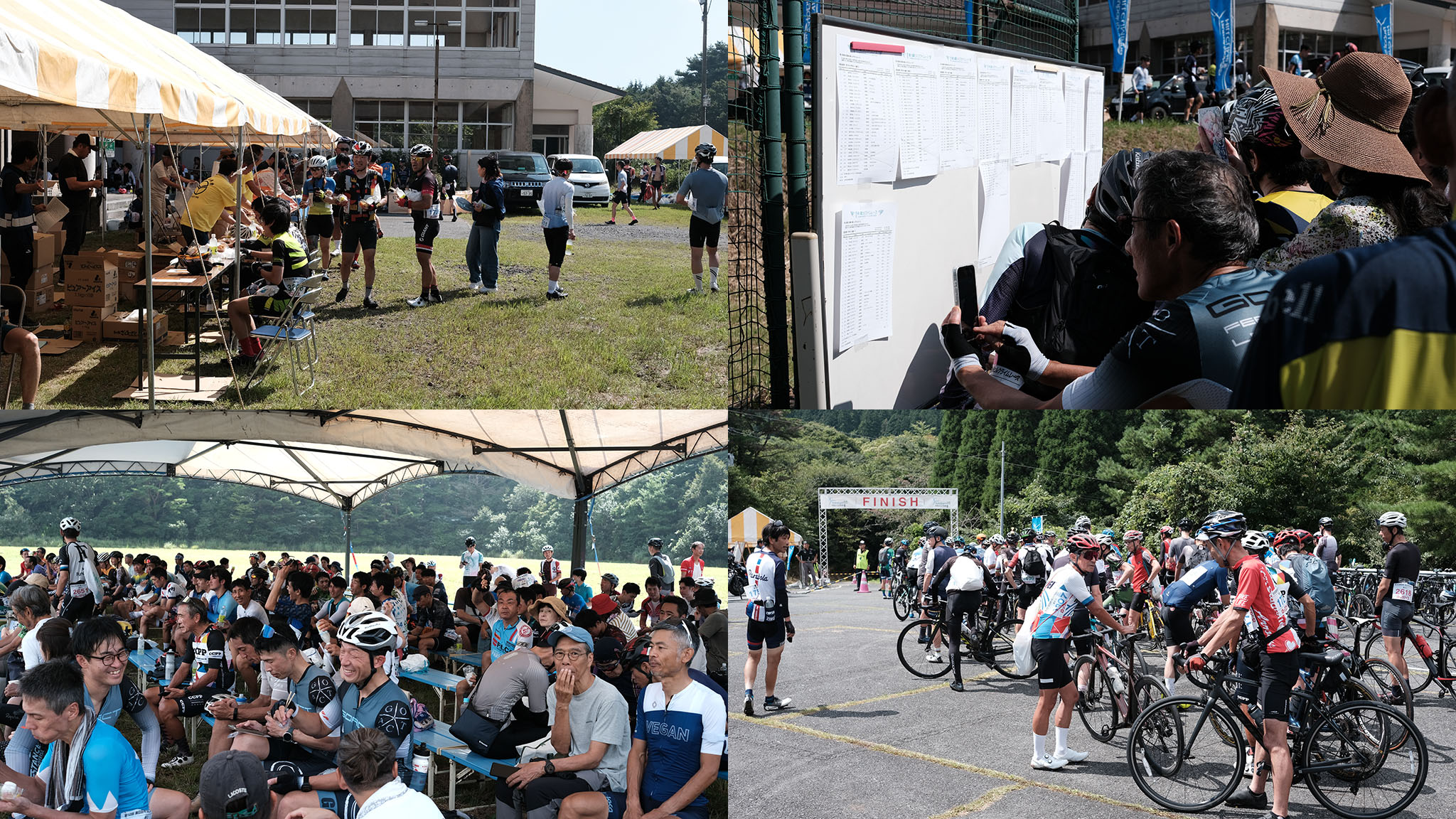 開会式の会場となる大山文化センターには出走前のメンテナンスも可能なステーションも完備され、集まったサイクリストたちはそれぞれに準備完了。レース前の緊張を秘めつつ、参加する仲間たちと和気あいあい。話題はレースの展望・作戦から今日の朝食まで様々です。